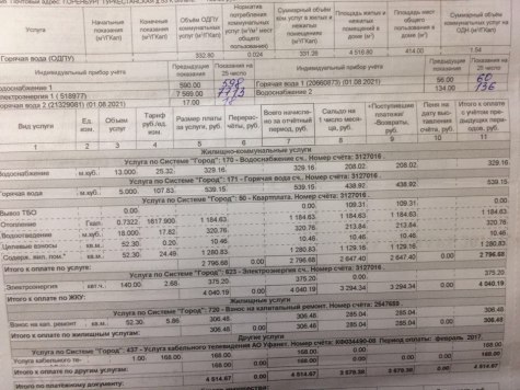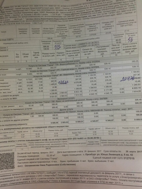- По нормативу мне насчитали более 4 тысяч рублей, а когда пошла разбираться мне ручкой зачеркнули и исправили на 2229 рублей. Мне сказали, что это в «Системе «Город» ошиблись. Если сотрудники проводят поверку показаний каждый месяц, то почему меня ранее не уведомили. Я не могу уследить за всем. И вообще, зачем тогда ТСЖ нам, если все вопросы мы должны решать сами? За что с нас собирают ежемесячно столько денег? Все эти вопросы мы переадресовали руководителю ТСЖ «Гарант». Любовь Вениаминовна, ссылаясь на федеральный закон, говорит об обязанностях жильцов следить за состоянием счетчиков жильцами самостоятельно. При этом не отрицает, что уведомлением жильцов они все же занимаются.