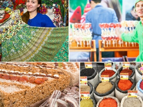 Там же можно подобрать впечатляющие подарки: посуду из голубой керамики от узбекских мастеров, иранский и костромской текстиль, кировские развивающие игрушки и красочные сувениры.