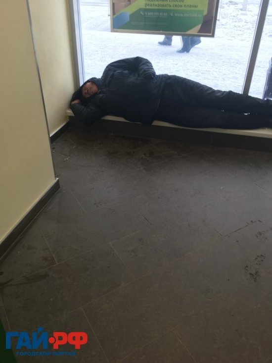 В круглосуточных зонах банкоматов Сбербанка нередко можно встретить ночующих или греющихся у батареи бомжей. Зимой такие ситуации возникают значительно чаще. Об очередной ночлежке на территории отделения банка сообщили жители Гая порталу Гай.рф.
