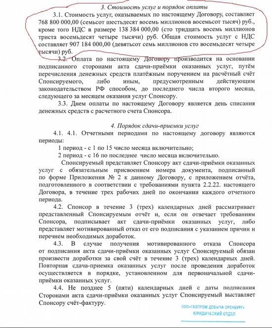 Несмотря на неудачу, спонсоры спортсменов решили оставить финансирование команды на прежнем уровне. Об этом говорят официальные документы ООО «Газпром добыча Оренбург». Как и в 2017 году, в этом году объем спонсорской поддержки составит 907 млн рублей. В рамках договора клуб будет размещать логотип спонсора на своем официальном сайте, на майках спортсменов, на транспорте, стадионе.