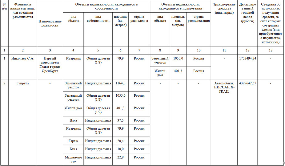 Накануне, городская администрация опубликовала декларированные сведения о доходах и имуществе за 2017 год. Самый большой доход за прошлый год в муниципалитете имеет, как ни удивительно ни кто-то из замов, а  начальник службы безопасности Дмитрий Зимцов. За прошлый год он заработал 6 738 120 рублей. Сумму в 2 863 896  рублей получила Татьяна Малышева, начальник УЖКХ города. Доход первого заместителя главы города Оренбурга Сергея Николаева оказался ниже, 1 752 494 рубля. А вот его супруга заработала побольше мужа –  целых 4 399 642 руб.