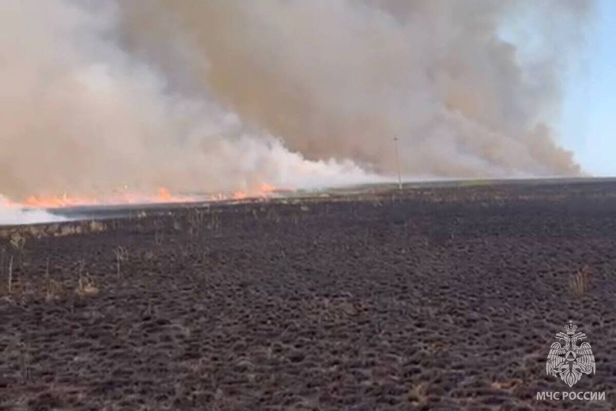 Борьбу с разгулом стихии затрудняют порывистый ветер и сушь, сообщили в пресс-службе регионального УМЧС.
