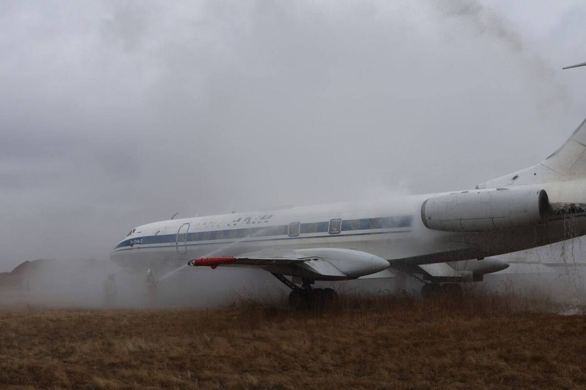 В аэропорту Оренбурга загорелся самолет. Пламя охватило левый двигатель прямо в воздухе.