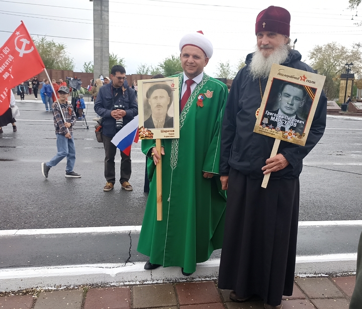 Митрополит Оренбургский и Саракташский Пётр, муфтий Альфит хазрат Шарипов так же прошли в общем строе.