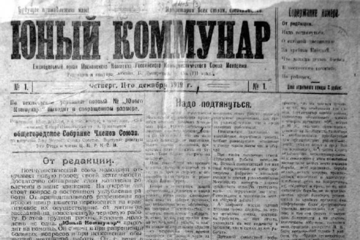 В этот день, 106 лет назад, увидел свет первый номер газеты «Юный коммунар». Она была учреждена как печатный орган Московского комитета Российского Коммунистического Союза Молодежи (РКСМ). Издание рождалось в суровых условиях: шла Гражданская война, не хватало ресурсов, и первый выпуск был отпечатан всего на двух страницах ломкой жёлтой бумаги.