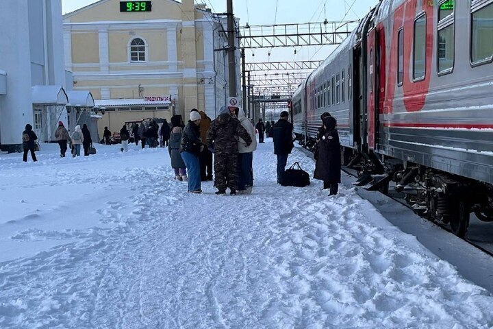 Поезд Деда Мороза прибыл в Оренбург, открыв в городе полноценный праздник прямо на перроне.