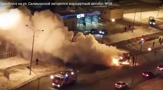 Пожар с участием автобуса№59 произошел сегодня утром, 14 декабря на улице Салмышской в областном центре. Возгорание ликвидировали к пол восьмому утра. И хотя о причинах произошедшего пока официально не сообщается, очевидцы утверждают, что «ПАЗ» загорелся после громкого хлопка. Оренбуржцы рассказали, что водитель вовремя успел вывести пассажиров из салона и никто не пострадал.