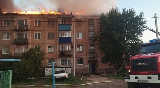 В поселке вечером 29 мая заполыхала крыша одного из многоквартирных домов на улице Советской. Ликвидация пожара продолжается.